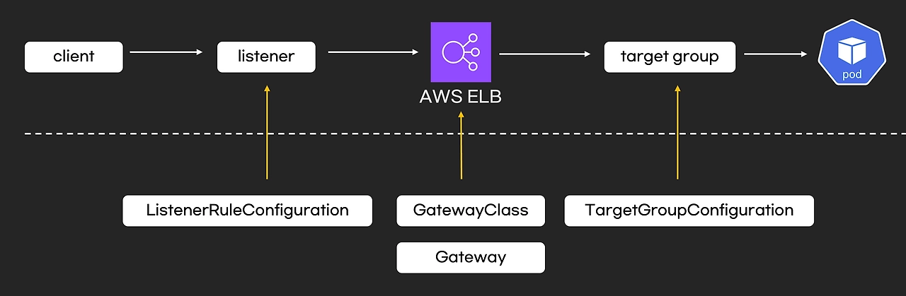 - 삭제 : kubectl delete httproute,targetgroupconfigurations,Gateway,GatewayClass --all