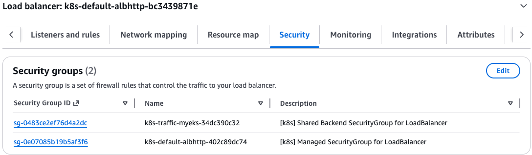 {"level":"info","ts":"2026-03-25T14:26:37Z","logger":"backend-sg-provider","msg":"created SecurityGroup","name":"k8s-traffic-myeks-34dc390c32","id":"sg-0483ce2ef76d4a2dc"}
