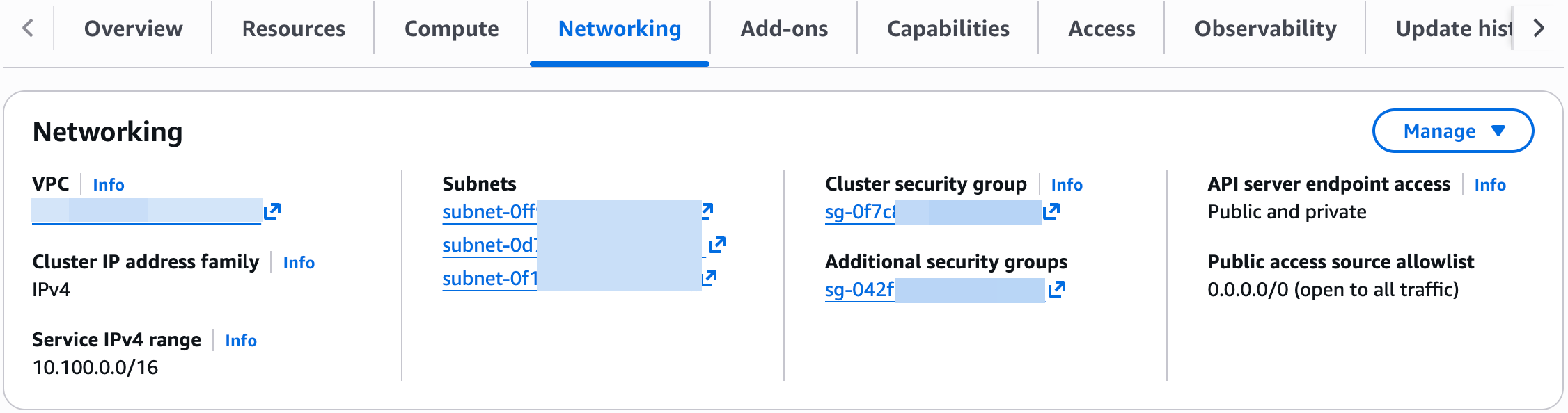 - Public access source allowlist : EKS API 서버에 접근할 IP